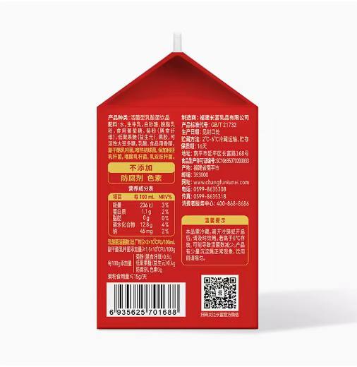 长富牛奶吃活菌乳饮品450ml屋顶/盒